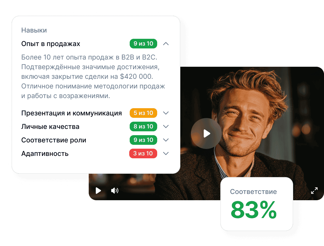 ИИ рекрутер Aivy отбирает тех, кто лучше всего вам подходит: по навыкам, опыту, ожиданиям по зарплате и другим ключевым критериям.